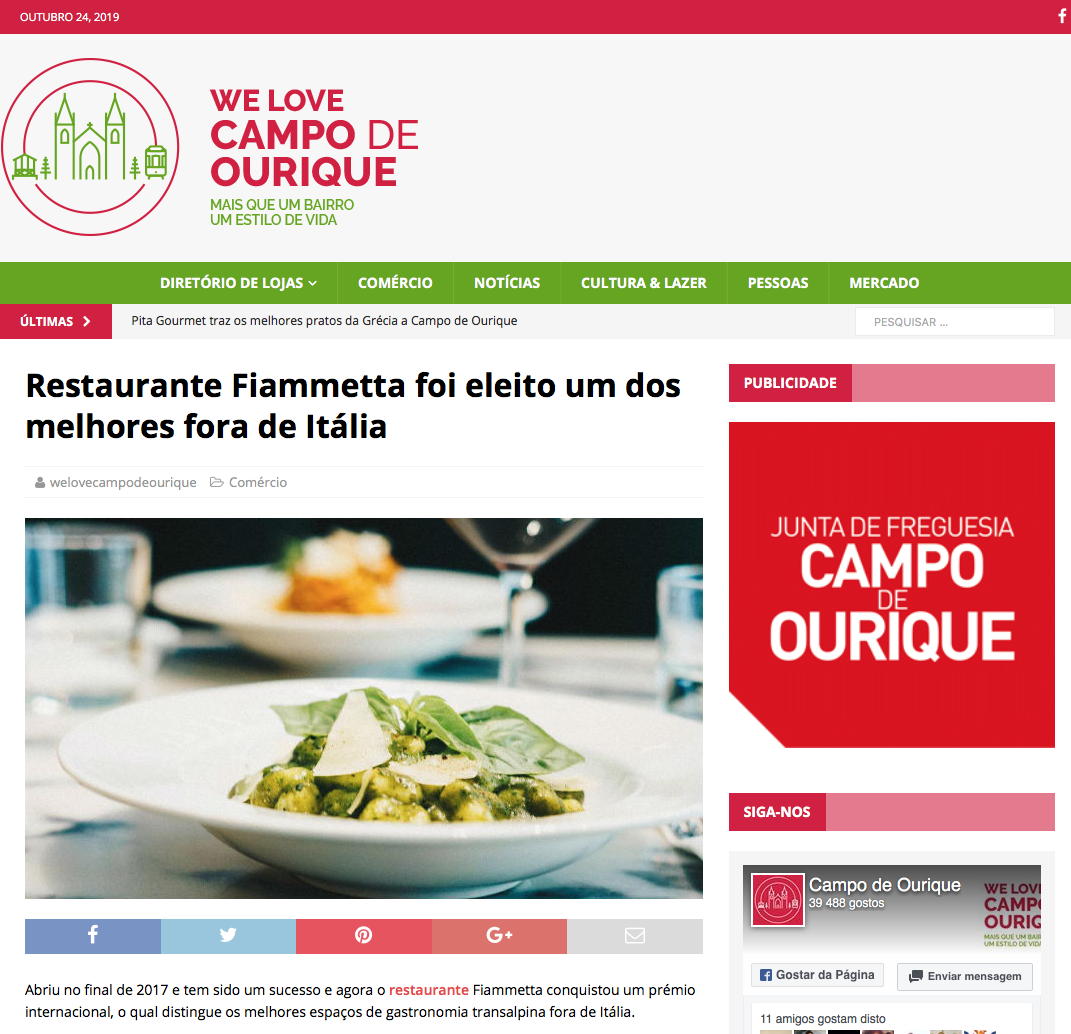 Restaurante Fiammetta foi eleito um dos melhores fora de Itália